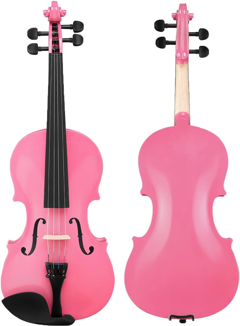 44 Acoustic Violin Set,Beginner Violin Vintage Solid Wood Violin Starter Kit with Carrying Case,Bow and Rosin Pink